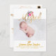 Aquarelle de PixDezines représentant un bouquet printanier / fleurs, rehaussé d'un lettrage au pinceau en faux or, avec un cœur doré pour une photo pour des cartes de faire-part de naissance, avec couleur de fond et polices personnalisables.