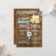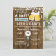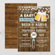 Faire-part de naissance pour bébé garçon avec un fond en bois rustique sur le thème de la bière et du BBQ.