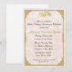 Élégant faire-part de fête pour 50e anniversaire de mariage avec anneaux de mariage dorés et cadre doré orné et enjolivé. Les invitations sont fournies avec des enveloppes et le choix du papier.