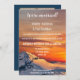 Une invitation de réception de mariage romantique uniquement, après la cérémonie de mariage, présentant un coucher de soleil coloré sur une scène de montagne enneigée. Le verso montre votre photo préférée (de mariage) avec un encadrement bleu marine et or rose. Si vous ne souhaitez pas utiliser votre photo, vous pouvez coller l'image du recto au verso ou choisir une couleur personnalisée.