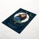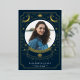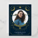 Célébrez le futur de votre diplômé avec style ! Ces faire-part de remise de diplôme présentent un magnifique design de boule de cristal en feuille d'or sur un fond bleu foncé riche, mettant en valeur une photo de votre diplômé à l'intérieur. Parfait pour capturer la magie de votre grande réussite. Annoncez votre succès avec une touche de brillance !