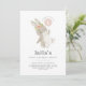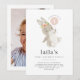 Un mignon lapin avec une couronne de fleurs, tenant un ballon rose, avec votre propre photo au verso. Vous pouvez changer le numéro 1 dans le ballon en n'importe quel numéro, et modifier tout le reste du texte, ou supprimer le numéro si vous préférez. Vous pouvez également changer la couleur du ballon dans ce design.