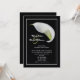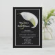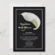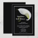 Les couples préfèrent souvent inviter des amis à une réception après le mariage au lieu d'une réception de mariage. C'est un excellent moyen de faire savoir à tout le monde que vous êtes mariés et de célébrer votre mariage après la cérémonie. Cette élégante invitation de réception après le mariage à motif floral présente un lys calla blanc sur fond noir. Les noms de la mariée et du marié apparaissent à gauche du lys avec tous les détails de votre invitation de réception après le mariage en dessous. Une invitation de réception après le mariage très élégante et magnifique. Copyright henishouseofpaper