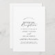 Ce faire-part de réception de mariage à l'écriture élégante est parfait pour une fête simple après une fugue amoureuse. Le design minimaliste noir et blanc présente une typographie romantique fantaisie avec un style glamour moderne. Personnalisable dans n'importe quelle couleur. Gardez le design minimal et classe, tel quel, ou personnalisez-le en ajoutant vos propres graphiques et illustrations. Les cartes RSVP sont vendues séparément, ou vous pouvez ajouter les informations RSVP au verso de la carte.