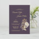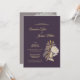Cette invitation de réception de mariage antique aux marguerites violettes combine un design moderne boho et vintage avec un design traditionnel de type royal. Le prune foncé et le lavande poussiéreux, contrastant avec les fleurs florales minimales et les fleurs sauvages dorées ainsi que la calligraphie jaune, créent une touche simple mais élégante à votre célébration de mariage de printemps ou d'été.