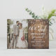 Conception de réception de mariage avec du bois rustique, des guirlandes lumineuses, de la calligraphie moderne, un petit cœur mignon et votre propre photo. Pour accéder aux outils de modification avancés, veuillez aller à « Personnaliser » puis cliquer sur le lien « cliquer pour personnaliser davantage ».