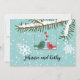 Deux oiseaux amoureux sur une balançoire avec de la neige tout autour ! Vous avez déjà célébré votre mariage, il est maintenant temps de partager ce moment avec votre famille et vos amis. Ce faire-part de réception de mariage sur le thème de l'hiver est facile à personnaliser avec vos propres informations.