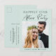 Carton d'invitation élégant de couleur vert mint pastel pour un mariage intime ou une annonce de mariage et réception. Le recto présente votre photo du jour du mariage et "Fête de Mariage Pour Toujours" dans un mélange de typographie simple et d'écriture moderne. Sous votre photo, ajoutez vos prénoms et la date du mariage. Au verso, personnalisez votre message avec plus de détails et ajoutez les détails de la fête ou de la réception et vos noms dans une écriture semblable à une signature.