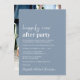 Annonce de mariage minimaliste moderne bleu poussiéreux et invitation à une réception ou à une fête de célébration post-mariage. Le devant présente "Fête pour toujours heureux" dans un mélange d'écriture contemporaine blanche et de typographie tendance grasse blanche. Personnalisez votre message et votre invitation avec plus de détails et ajoutez vos noms dans une écriture semblable à une signature. Le verso présente votre photo de mariage, vos prénoms et la date du mariage.