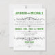 Cartes d'invitation modernes conçues pour les mariages où le couple a un mariage de destination ou une cérémonie de mariage privée restreinte, et n'invite les invités qu'à la célébration de la réception. La typographie sur le devant de ces invitations est conçue avec des polices vertes et grises, et le verso est un vert uni avec un texte blanc facultatif pour les informations de RSVP potentielles.
