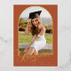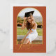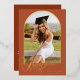 Honorez la réussite de votre diplômé avec ce faire-part de remise de diplôme élégant à thème terracotta et or. Caractérisé par un lettrage calligraphique gras en feuille d'or « Graduate » et un espace pour une grande photo dans un cadre cintré moderne, ce design dégage de la sophistication et du charme. Parfait pour les remises de diplôme de lycée ou d'université, il allie style moderne et élégance intemporelle. Personnalisez-le avec vos détails pour créer un souvenir mémorable.