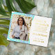 Faire-part unique et tendance de félicitations pour diplômé avec feuille d'or jaune et invitation à une fête de célébration, avec un fond à rayures ondulées rétro vintage aqua turquoise, bleu, vert menthe et violet. Avec de l'espace pour personnaliser ou adapter avec une photo, le nom du diplômé, l'année de remise de diplôme, l'école secondaire, le nom de l'université ou de l'établissement d'enseignement supérieur futur, et les informations sur l'événement de célébration. Faites savoir à la famille, aux amis et aux voisins qu'il y a un heureux diplômé prêt à conquérir le monde, et invitez tout le monde à venir célébrer l'événement heureux avec vous !