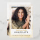 Le faire-part de remise de diplôme en or élégant moderne est parfait pour le diplômé du lycée ou de l'université qui recherche une carte élégante mais tendance et simple. Comprend un espace pour 2 photos, une sur le devant et une sur le dos. Personnalisez le texte pour qu'il dise ce que vous voulez. Exemple présenté avec feuille d'or. Choisissez l'argent ou l'or rose pour mélanger vos métaux !