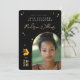 Annoncez l'étape importante de votre diplômé dans un style magique avec cette carte de graduation Afro Licorne présentant une licorne dorée époustouflante avec une crinière dorée, symbolisant la force et l'individualité. Sur un fond noir épuré avec des accents de diamants dorés scintillants, cette carte présente la phrase stimulante « Intelligente. Forte. Étincelante. » et le message « Notre Licorne est diplômée. » Personnalisez-la avec le nom du diplômé, sa photo, le nom de l'école et l'année de promotion pour créer un souvenir élégant et significatif. Parfait pour être envoyé par la poste à des amis et à la famille ou pour accompagner des cadeaux.