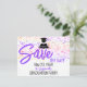 Envoyez l'annonce "Sauver la date" pour une fête de remise de diplôme avec une bordure supérieure colorée de confettis. Personnalisez le texte avant et arrière dans les champs de modèle, supprimez le texte ou modifiez-le à l'aide de l'outil de conception pour sélectionner un style de police, une taille et une couleur que vous préférez. Remplacez la photo de remplacement à l'arrière par une image carrée de votre diplômé. Photo de remplacement fournie par pixabay.com.