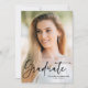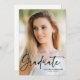 Une carte de faire-part de remise de diplôme photo de diplômé en écriture moderne avec police d'écriture moderne, photo en portrait pleine page sur le devant avec nom et informations de classe. Le verso comporte une deuxième photo avec des détails supplémentaires. Si vous êtes intéressé par un design personnalisé, je serais ravie de créer une invitation personnalisée pour vous. N'hésitez pas à m'envoyer un courriel à susan@susannewberrydesigns.com.