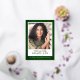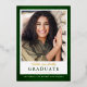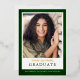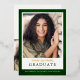 Le faire-part de remise de diplôme vert et or élégant moderne est parfait pour le diplômé du lycée ou de l'université qui recherche une carte élégante mais tendance et simple. Comprend un espace pour 2 photos, une sur le devant et une sur le dos. Personnalisez le texte pour qu'il corresponde à vos envies. Exemple présenté avec feuille d'or. Choisissez argent ou or rose pour varier vos métaux !