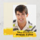 Une bannière grunge jaune ensoleillé au bas de votre photo contient votre annonce de remise de diplômes. N'oubliez pas de changer l'année pour refléter la vôtre.