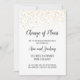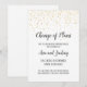 Cette élégante annonce de report de mariage à calligraphie et confettis dorés est parfaite pour informer les invités du report du mariage ou d'un autre événement. Le design chic présente des confettis dorés sur fond blanc, avec une calligraphie sombre élégante. Personnalisez l'annonce avec le type d'événement, les noms des mariés et la nouvelle date.