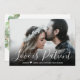 Carte de photo de notification de report de date avec eucalyptus verdoyant avec photo horizontale complète. Modèle d'annonce de report d'événement - carte simple et rustique de changement de date avec photo. Caractéristiques feuilles d'eucalyptus verdoyantes, design élégant de typographie manuscrite avec texte « L'amour est patient » et une photo horizontale que vous pouvez facilement modifier. #3339 Si vous avez besoin d'aide ou d'articles assortis, veuillez me contacter.