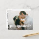 Changement de programme ! Annoncez à votre famille et à vos amis le report de votre mariage avec cette carte postale "nouvelle date". Elle présente une typographie audacieuse rétro. Personnalisez-la en ajoutant vos photos, noms, adresse et autres détails. Cette carte postale de nouvelle date sera également parfaite comme faire-part de mariage intime.