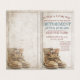 Faire-part de retraite avec des bottes en dentelle patinées et vieilles en style vintage. Le texte sur le genre, l'année, le texte honorifique, la date, l'heure, le lieu de célébration et le RSVP peuvent être customisés.