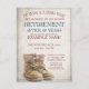 Faire-part de retraite avec des bottes en dentelle patinées et vieilles en style vintage. Le texte sur le genre, l'année, le texte honorifique, la date, l'heure, le lieu de célébration et le RSVP peuvent être customisés.