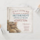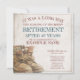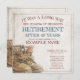 Faire-part de retraite avec des bottes en dentelle patinées et vieilles en style vintage. Le texte sur le genre, l'année, le texte honorifique, la date, l'heure, le lieu de célébration et le RSVP peuvent être customisés.