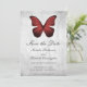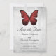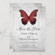 Élégante et simple invitation de sauvegarde de mariage avec un papillon rouge sur un fond gris grunge. Ce design est un choix unique pour annoncer un mariage moderne. Facile à personnaliser avec vos détails de mariage. Cliquez sur "Personnaliser" pour trouver plus d'options de personnalisation.