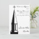 Une invitation de mariage "save the date" avec une illustration graphique en noir et blanc représentant un clocher d'église et une croix. Le verso présente une église simplifiée.