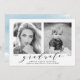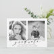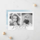 Nos annonces élégantes de remise de diplômes "Maintenant et Ensuite" affichent la photo préférée de votre diplômé (maintenant) ainsi qu'une photo de bébé ou de tout-petit (alors). Changez les années en dessous de chaque photo pour refléter l'année de graduation et l'année de naissance (ou l'année où la photo a été prise). Les annonces de fin d'études modernes affichent "grade" dans une police de caractères élégante avec le nom du diplômé, le nom de l'école et l'année de classe ci-dessous. L'envers de la faire-part de gris est doté d'un arrière - plan d'aquarelle bleu clair. Ajoutez une photo ou un texte à l'arrière pour un design plus personnalisé !