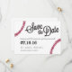 Conception de faire-part avec couture de baseball pour votre mariage sur le thème du baseball ! Personnalisez avec les couleurs de votre équipe préférée.