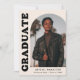 Faire-part de remise des diplômes élégant et branché avec la photo du diplômé sur le devant avec un cadre photo en arc décalé. "Graduate" est affiché en gras noir rétro lettrage sur un arrière - plan crème d'ivoire. Personnalisez l'avant du faire-part de remise de diplômes en photo en ajoutant le nom du diplômé, son école et son année de remise de diplômes. La carte s'inverse pour afficher 3 photos supplémentaires avec espace pour le texte personnalisé comme les futurs plans de collège, plans de carrière, détails de la fête de remise des diplômes, etc. Le faire-part d'obtention du diplôme de la crème est parfait pour les diplômés du secondaire et du collège.