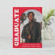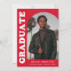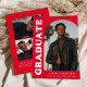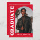 Faire-part de remise des diplômes élégant et branché avec la photo du diplômé sur le devant avec un cadre photo en arc décalé. "Graduate" est affiché en gras blanc rétro lettrage sur un arrière - plan rouge. Personnalisez l'avant du faire-part de remise de diplômes en photo en ajoutant le nom du diplômé, son école et son année de remise de diplômes. La carte s'inverse pour afficher 3 photos supplémentaires avec espace pour le texte personnalisé comme les futurs plans de collège, plans de carrière, détails de la fête de remise des diplômes, etc. Le faire-part rouge est parfait pour les diplômés du secondaire et du collège.