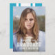 Carte faire-part de graduation photo de style variable. La carte a un motif à bandes blanches contre une couleur arrière - plan modifiable (cliquez sur personnaliser pour changer) à l'arrière. Personnalisez-le en remplaçant le texte de l'espace réservé et en remplaçant l'exemple/l'espace réservé par votre propre photo. Pour plus d'options comme changer la police et sa taille/couleur ou l'espacement entre les lettres cliquez sur le bouton "Personnaliser". *Veuillez noter que le filigrane Zazzle qui apparaît dans l'aperçu du zoom n'apparaîtra PAS sur le produit imprimé final. © Bois de rose et agrumes