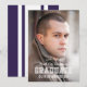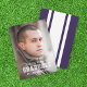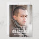 Carte faire-part de graduation photo de style variable. La carte a un motif à bandes blanches contre une couleur arrière - plan modifiable (cliquez sur personnaliser pour changer) à l'arrière. Personnalisez-le en remplaçant le texte de l'espace réservé et en remplaçant l'exemple/l'espace réservé par votre propre photo. Pour plus d'options comme changer la police et sa taille/couleur ou l'espacement entre les lettres cliquez sur le bouton "Personnaliser". *Veuillez noter que le filigrane Zazzle qui apparaît dans l'aperçu du zoom n'apparaîtra PAS sur le produit imprimé final. © Bois de rose et agrumes