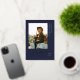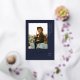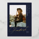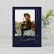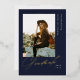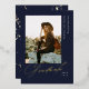 Élégant script de fin d'études, Gold Foil Photo Graduation Faire-part en bleu marine. Caractéristiques, fond en marbre doré.