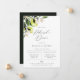 Elégante aquarelle de citrons botaniques, arrangement feuille et fleurs, invitation à la répétition dîner. Design de typographie chic et moderne. L'Arrière - plan présente une solide couleur vert foncé de la forêt de mossy.