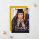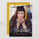 Ce faire-part de graduation simple et classique comprend une grande photo verticale et le mot "diplômé" en écriture. L'aide de coordination peut être customisée avec votre choix d'une école ou d'une couleur préférée (cliquez sur le bouton "personnaliser", sélectionnez "retour", puis "sélectionner une couleur arrière - plan").