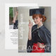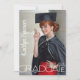 Annoncez l'exploit de votre diplômé avec cette superposition photo pleine saignée avec typographie moderne et élégante dans votre choix de couleurs pour se démarquer sur votre image et script de calligraphie chic pour le nom. Le dos comprend une photo et votre texte personnalisé pour inclure des informations supplémentaires. Tous les styles de police de texte, les couleurs, la taille et le placement ainsi que les couleurs graphiques GRADUATE sont modifiables. ASSISTANCE : Pour obtenir de l'aide sur la modification ou la personnalisation de la conception, le changement de couleur, le redimensionnement, le transfert de la conception vers un autre produit ou si vous souhaitez coordonner des éléments, contactez le concepteur AVANT LA COMMANDE via l'onglet MESSAGE Conversation Zazzle ci-dessous ou envoyez un courriel à makeitaboutyoustore@gmail.com.