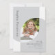 Ce faire-part de graduation plat de 5" x 7" présente des caractéristiques et un design d'arc avec deux photos, l'une à l'avant, l'autre à l'arrière en gris et blanc. Les titulaires de permis comprennent, le nom du diplômé, le nom du collège ou de l'université, le diplôme et une ligne supplémentaire pour obtenir des renseignements supplémentaires comme les distinctions spéciales ou l'accent mis sur le diplôme.