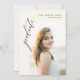 Marquez votre étape de graduation avec une élégance intemporelle à l'aide de notre Faire-part de graduation en photo simple avec Arc Neutre. Avec une palette neutre sophistiquée et un design d'arc classique, cette faire-part respire le raffinement et le style. La disposition minimaliste place votre photo avant et centre, permettant à votre réalisation de prendre le centre de la scène tout en ajoutant une touche personnelle. Le design épuré et simple garantit que votre message est transmis avec clarté et grâce, ce qui le rend parfait pour partager votre réussite avec vos amis, votre famille et vos collègues. Imprimé sur un carton de haute qualité avec une finition lisse, notre faire-part de graduation a l'air non seulement exquis, mais aussi luxueux au toucher. C'est la façon idéale de commémorer ce moment important de votre vie et d'invitations que vos proches peuvent célébrer avec vous. Faites une déclaration d'élégance sous-jacente avec notre Faire-part de Graduation Photo Simple Neutral Arch Graduate et laissez votre réalisation briller d'une manière à la fois intemporelle et sophistiquée.