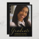 Annoncez votre graduation en style avec cette carte de faire-part grad simple mais chic. Ce modèle design présente votre photo sur le devant avec un cadre noir et sous le mot "Graduate" en faux texte or avec votre nom, l'école et l'année ci-dessous pour personnaliser. Conçu par l'artiste Susan Coffey.