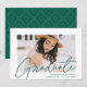 Faire-part Diplômé moderne Green Script Photo Graduate
