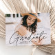 Célébrez la grade avec notre élégante faire-part de graduation photo. Le faire-part de graduation affiche la photo du diplômé avec "Graduate" dans une superposition de script de calligraphie moderne noire. Personnalisez le devant de la faire-part moderne de graduation en ajoutant le nom du diplômé, le nom de l'école et l'année de graduation. La faire-part s'inverse pour présenter un motif géométrique pointillé noir et blanc tendance. Le design est parfait pour les diplômés du secondaire et du collège.