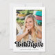 Célébrez le diplômé avec ce faire-part de diplôme super avec votre photo préférée avec l'image de texte rétro "Graduate", le nom de l'école, l'année de diplôme et votre nom. L'arrière comprend du texte personnalisé et un casquette couleur aquarelle, des fleurs et un défilement de diplôme.