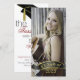 Elégant faire-part de graduation, fait sur un stock longue carte maigre, avec des graphiques d'une classe décorative noir et or, sur le devant, avec une photo personnalisée de la grade, comme l'arrière - plan. Exemple de photo avec l'aimable autorisation de Lorri Lang. À l'arrière de la faire-part se trouve l'expression "Le Tassel valait la peine du Hassle", avec un grand casquette en carton noir. L'information des diplômés est ci-dessous et prêt à être personnalisé pour répondre à vos besoins.