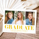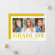 Annoncez la grande réussite de votre diplômé avec ces annonces minimalistes de graduation, avec trois de leurs photos préférées et des lettres jaunes audacieuses "Graduate". Ce design propre et moderne permet de personnaliser avec le nom du diplômé, le nom de l'école et l'année de diplôme, créant un souvenir unique et mémorable. Idéal pour les diplômés du secondaire ou de l'université, ce faire-part multi-photo saisit parfaitement leur moment spécial tout en le gardant élégant et frais. Partagez leur succès de façon amusante et attrayante avec ce faire-part de graduation dynamique et personnalisable.