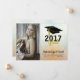 Faire-part de graduation photo élégant, avec des graphiques d'un casquette de mortier noir et or, sur un arrière - plan dégradé. Le côté gauche de l'avant a une photo personnalisée prête à être personnalisée. Modifiez l'année et le texte personnalisé pour répondre à vos besoins en matière de diplôme. Exemple de photo avec l'aimable autorisation de Lorri Lang.