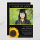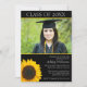 Un joli tournesol jaune est présenté sur cette invitation à la graduation de la photo. Un faire-part à thème fleuri et design. Idéal pour un baccalauréat, un diplôme d'études supérieures ou une fête de fin d'études !